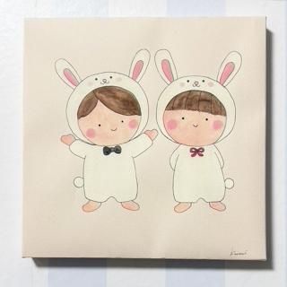 着ぐるみシリーズ「うさぎ」(ウッドパネル30cm×30cm)