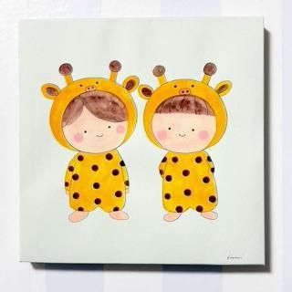 着ぐるみシリーズ「きりん」(ウッドパネル30cm×30cm)