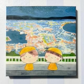 ☆函館イラスト(函館山夜景)ポストカードサイズイラスト★フレーム入り